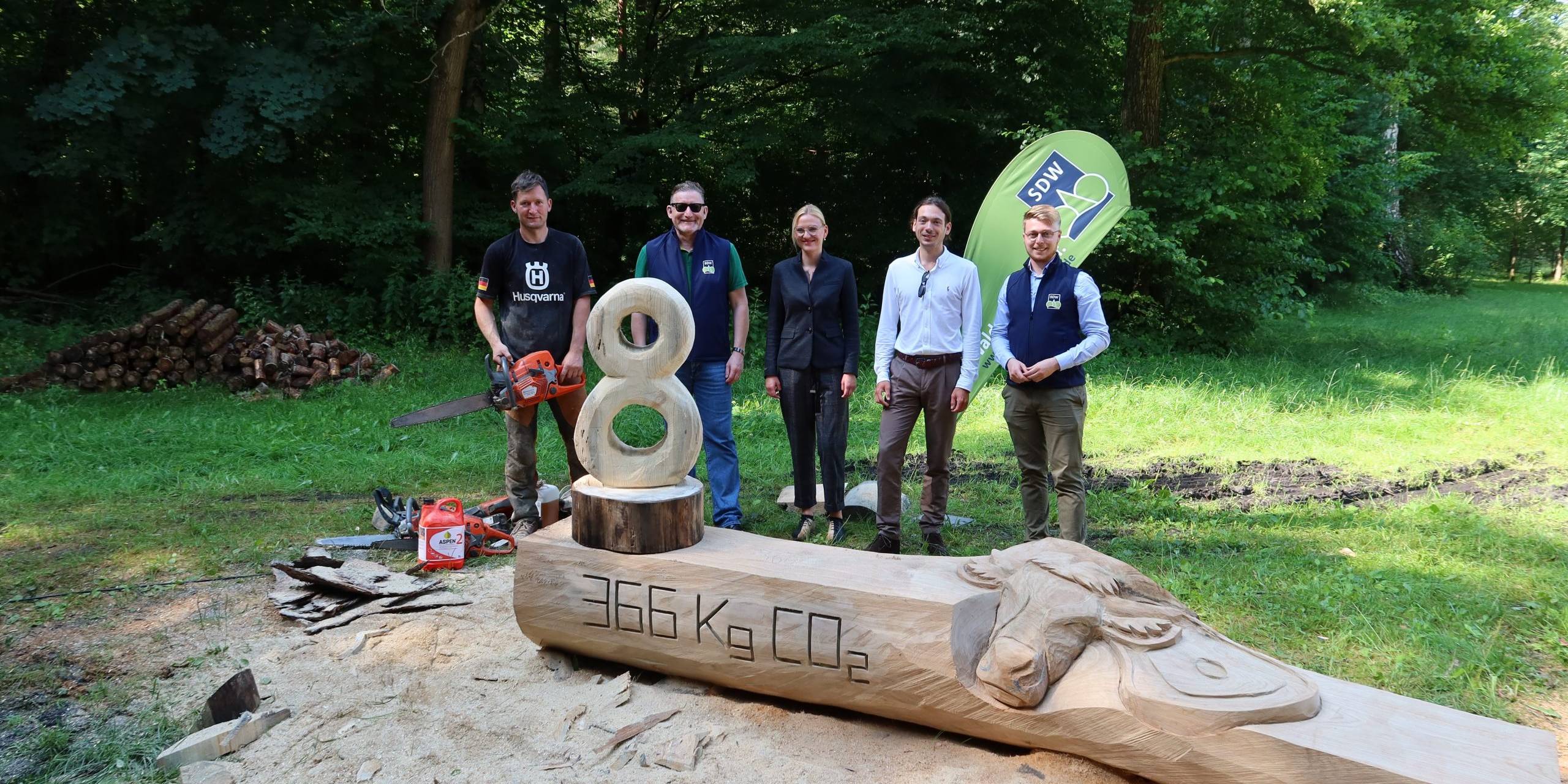 Der zweifache Weltmeister im Motorsägen-Kunstschnitzen, Florian Lindner, hat dieser Forderung den nötigen Feinschliff verpasst. Die Zahl «8» – Stichwort CO2-Tonnage – steht darum auch im Mittelpunkt dieser gemeinsamen Informationskampagne, mit der die Waldbesitzer die Öffentlichkeit auf ihre Belange und die notwendige Pflege des Waldes hinweisen. Denn: “Jeder Hektar Wald absorbiert im Jahresdurchschnitt 8 Tonnen CO2. Das entspricht nahezu dem durchschnittlichen CO2-Fußabdruck jedes deutschen Bürgers”, erklärt Antonia Bing. Aus diesem Grund bekräftigen die Verbände der waldbesitzenden Grundeigentümer ihre Forderung, das forstliche Engagement in Zukunft aus der CO2-Abgabe zu honorieren.